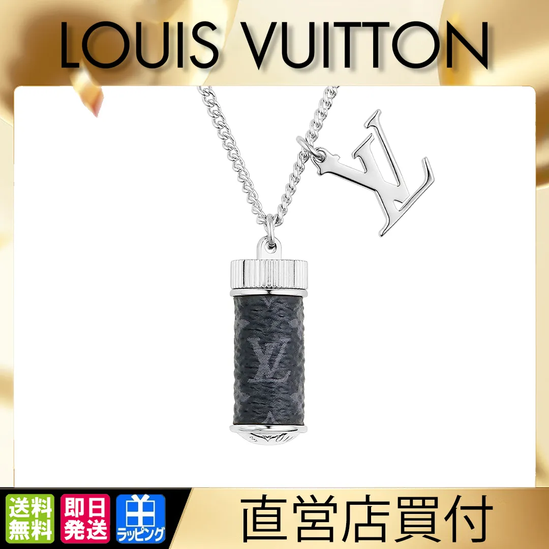 【国内発送/直営店】ペンダント LVイニシャル 合成石 ストラス ネックレス エイジングシルバー モノグラムフラワー アクセサリー PENDANT CHAIN LV NECKLACE