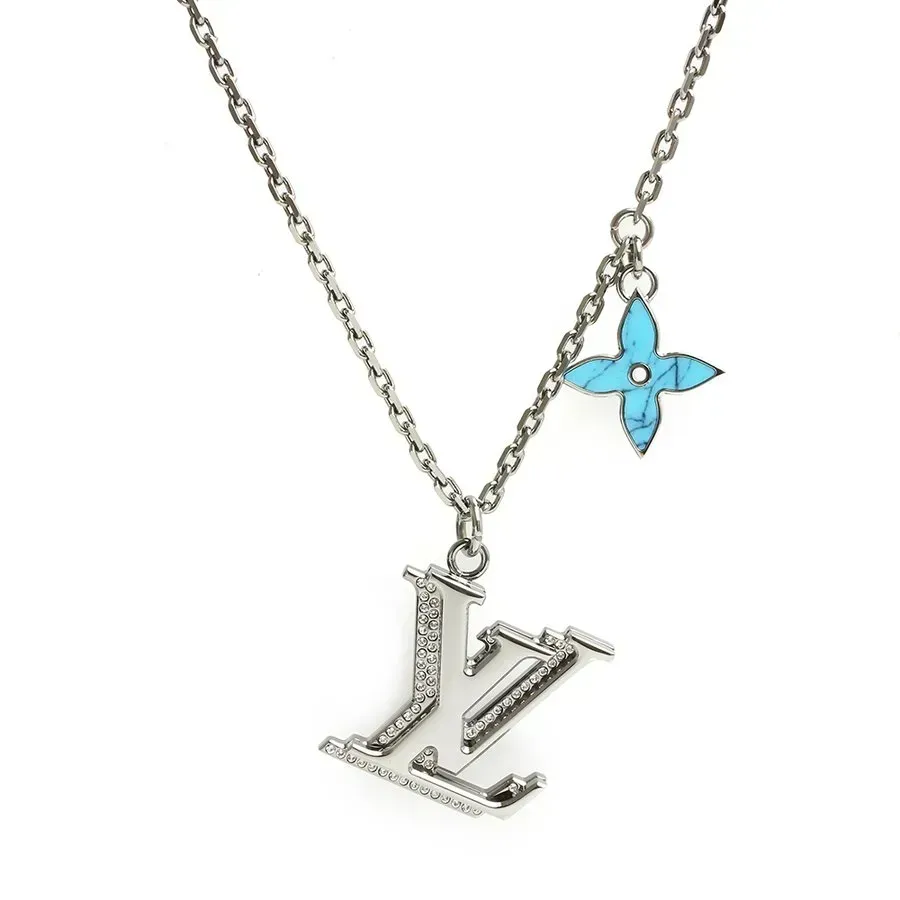 【国内発送/直営店】ネックレス ペンダント LVイニシャル クリスタル フラワー ターコイズ M80208 箱付